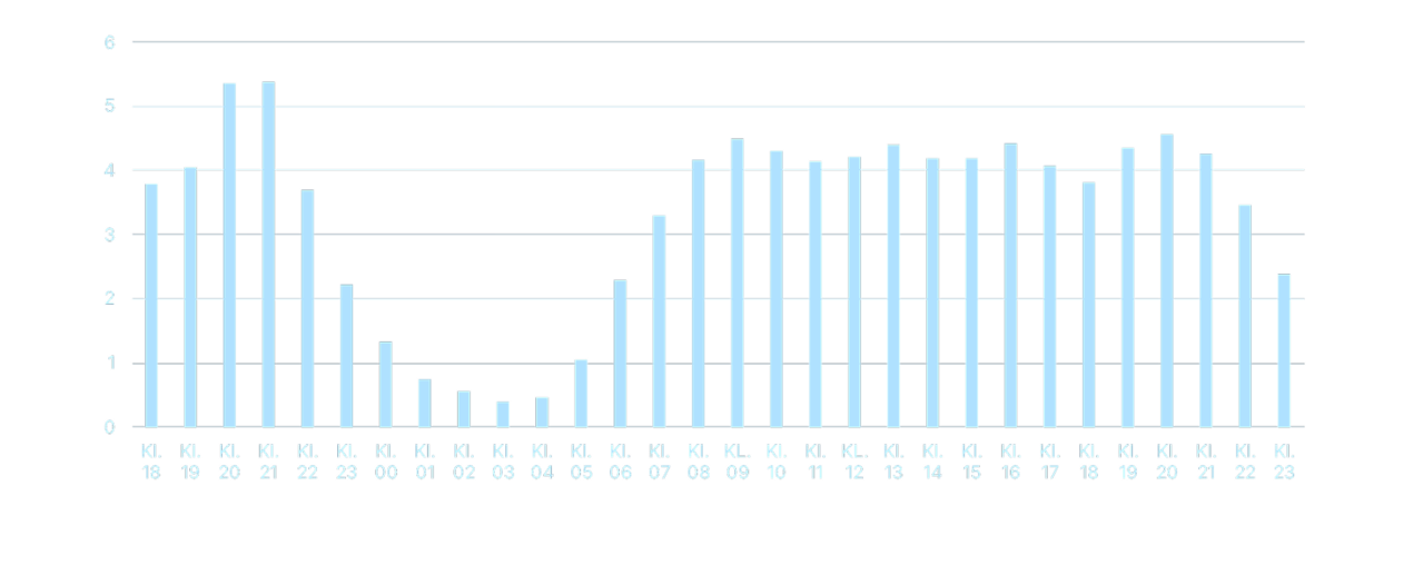 Fordeling i % af sessioner pr. time fra torsdag aften til og med hele Black Friday 2024